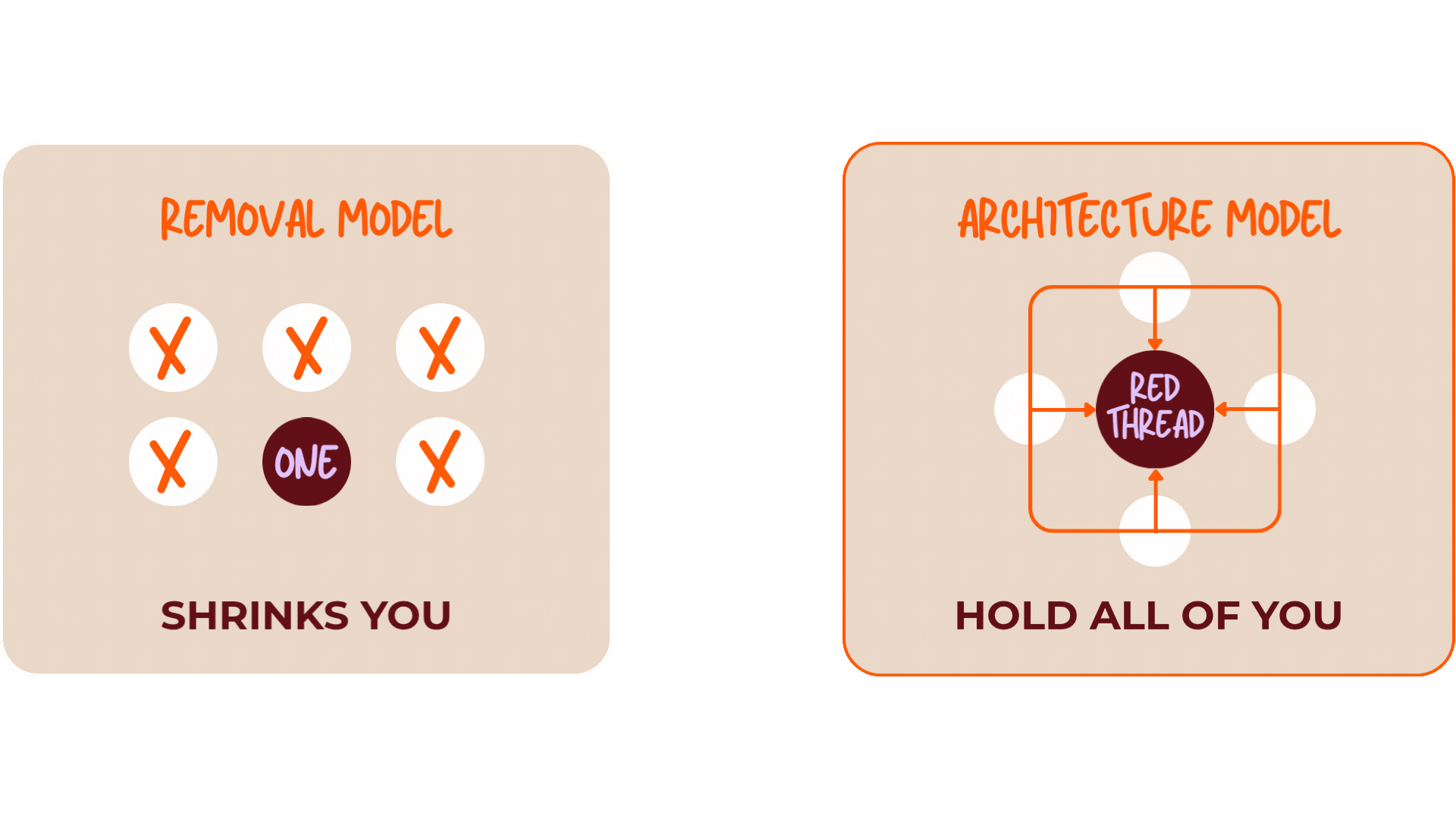 So instead of asking which part of yourself to lead with, you find the red thread running underneath all of it.