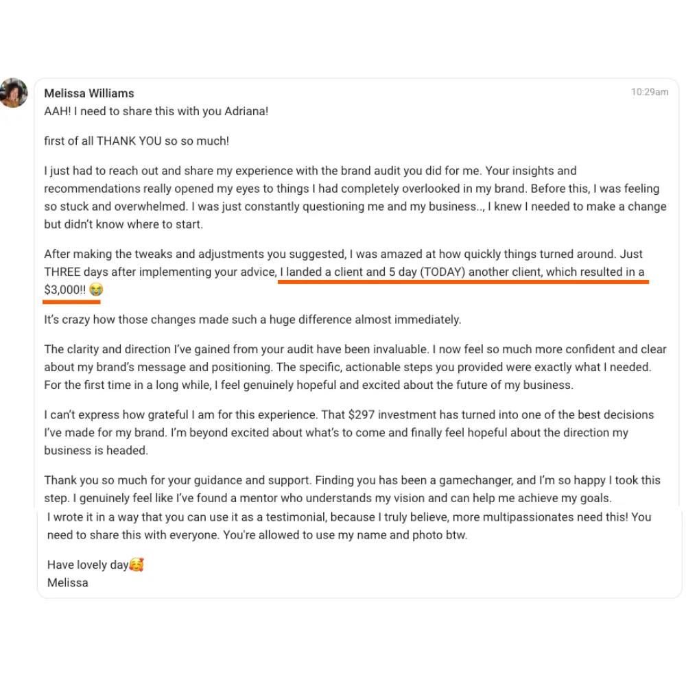 Turn what you found into something bigger than a bio. A brand vision. A named framework only you could have built. A clear offer structure.