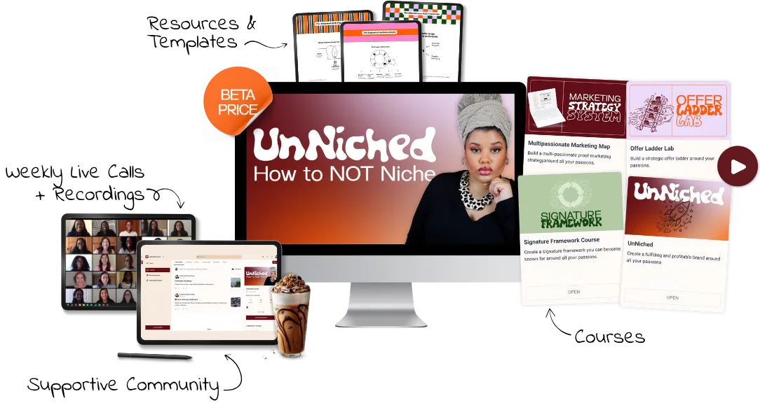 UnNiched was built from the ground up for women who have many things to say and need a structure that knows what to do with all of them. If what you tried before told you to niche down, it was the wrong program. This one starts exactly where that one failed.